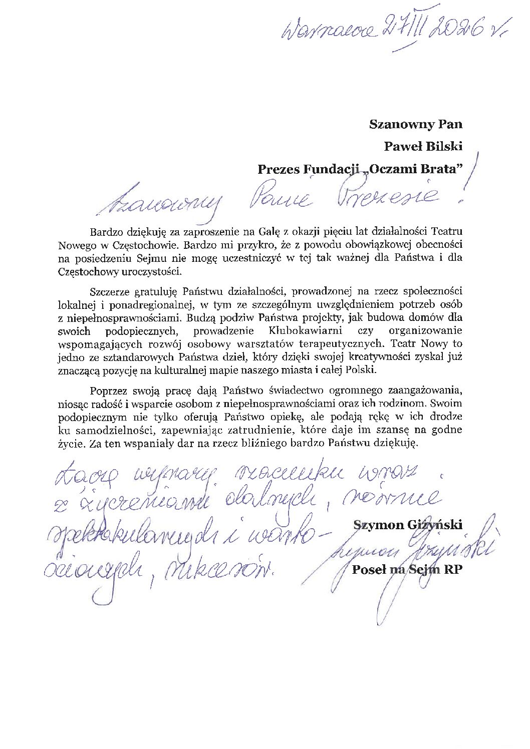 ← List Posła Szymona Giżyńskiego do lekarzy Życzenia Wielkanocne →
