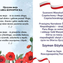 Szanowni Mieszkańcy Częstochowy i Ziemi Częstochowskiej! Wszyscy Czcigodni Polscy Patrioci! Jest oczywiste, iż w dniu Święta Niepodległości nasze wdzięczne i wierne myśli biegną ku Komendantowi, Naczelnikowi, Marszałkowi Józefowi Piłsudskiemu. To z Jego Osobą wiąże się nierozerwalnie fakt wybicia się – po 123 latach niewoli – na niepodległość w 1918 roku i niepodważalne potwierdzenie niepodległości Państwa […]